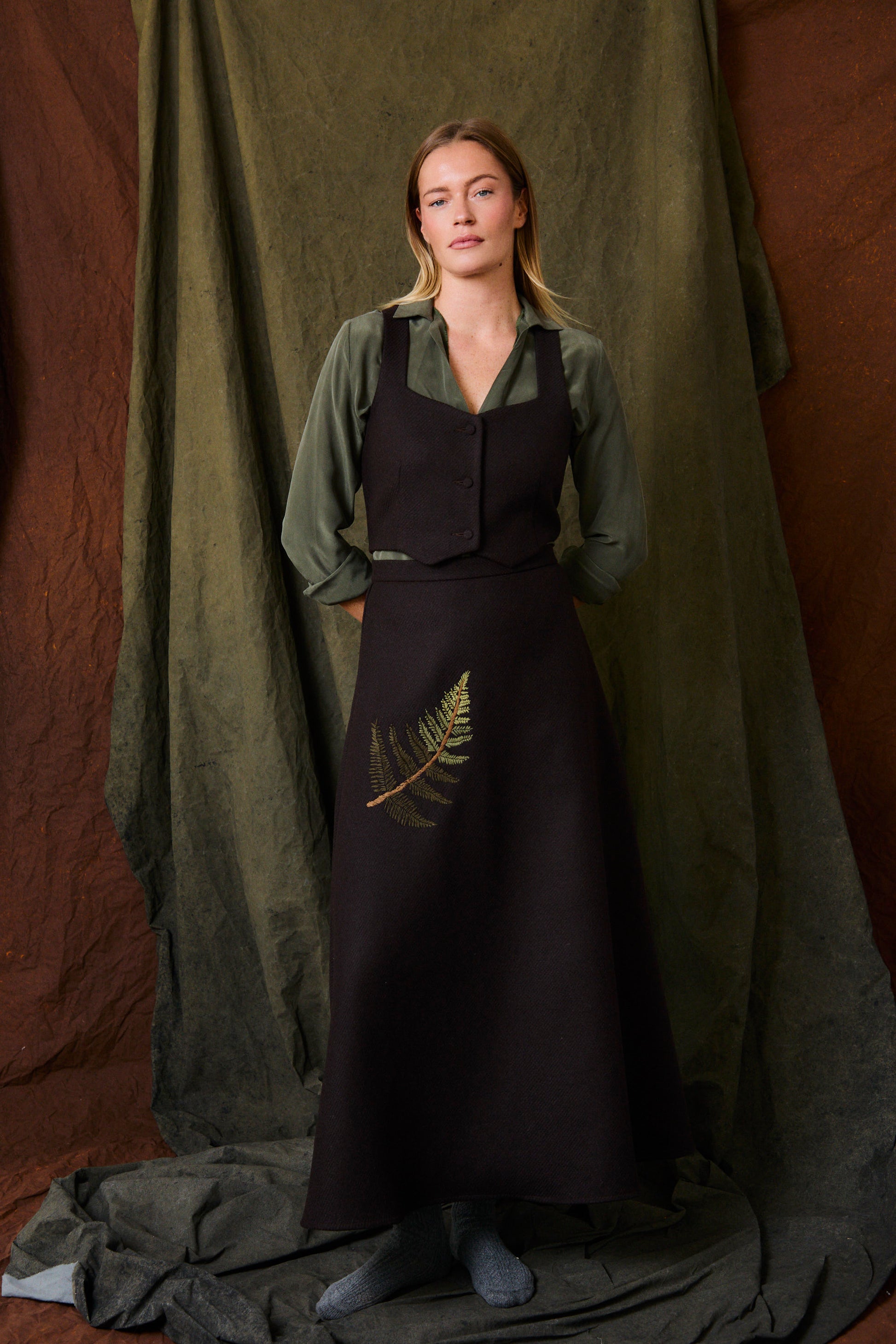 Detalle: hoja de helecho bordada en la espalda