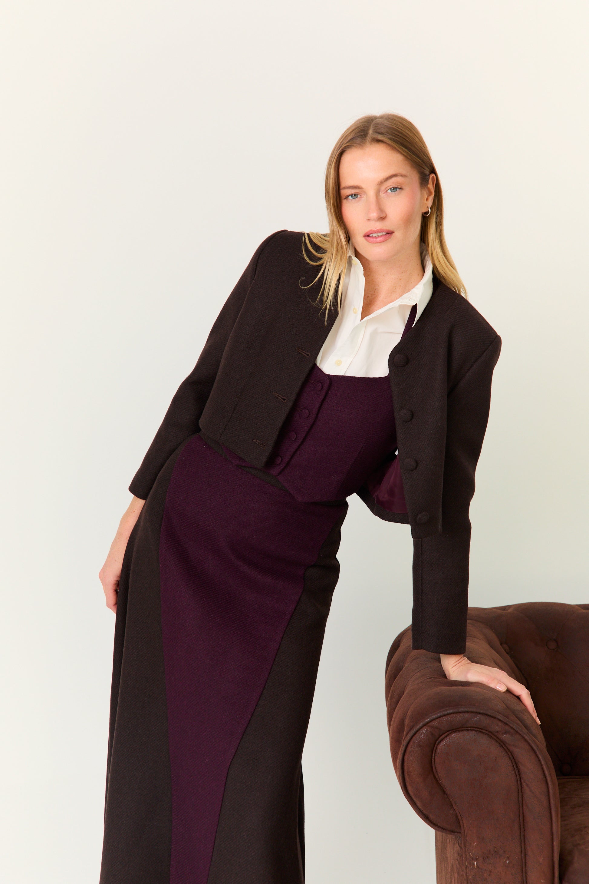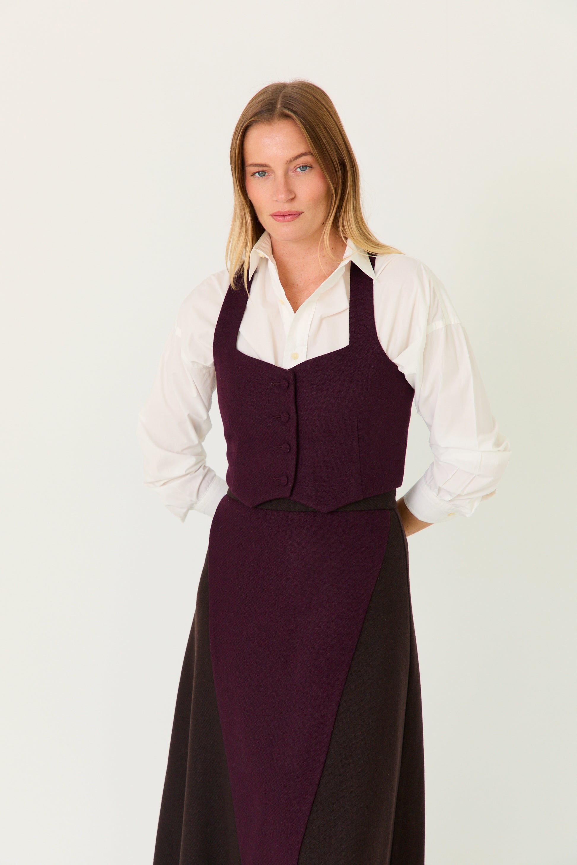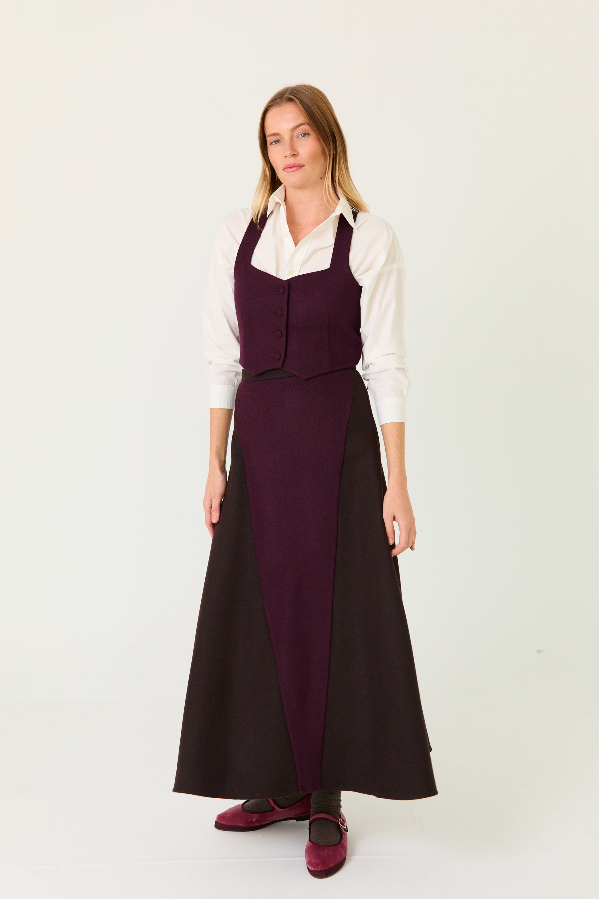 La Falda Circus 02 es un emblema de Copines. Su silueta amplia y movimiento sereno la vuelven una pieza atemporal, símbolo de la elegancia natural del campo.
