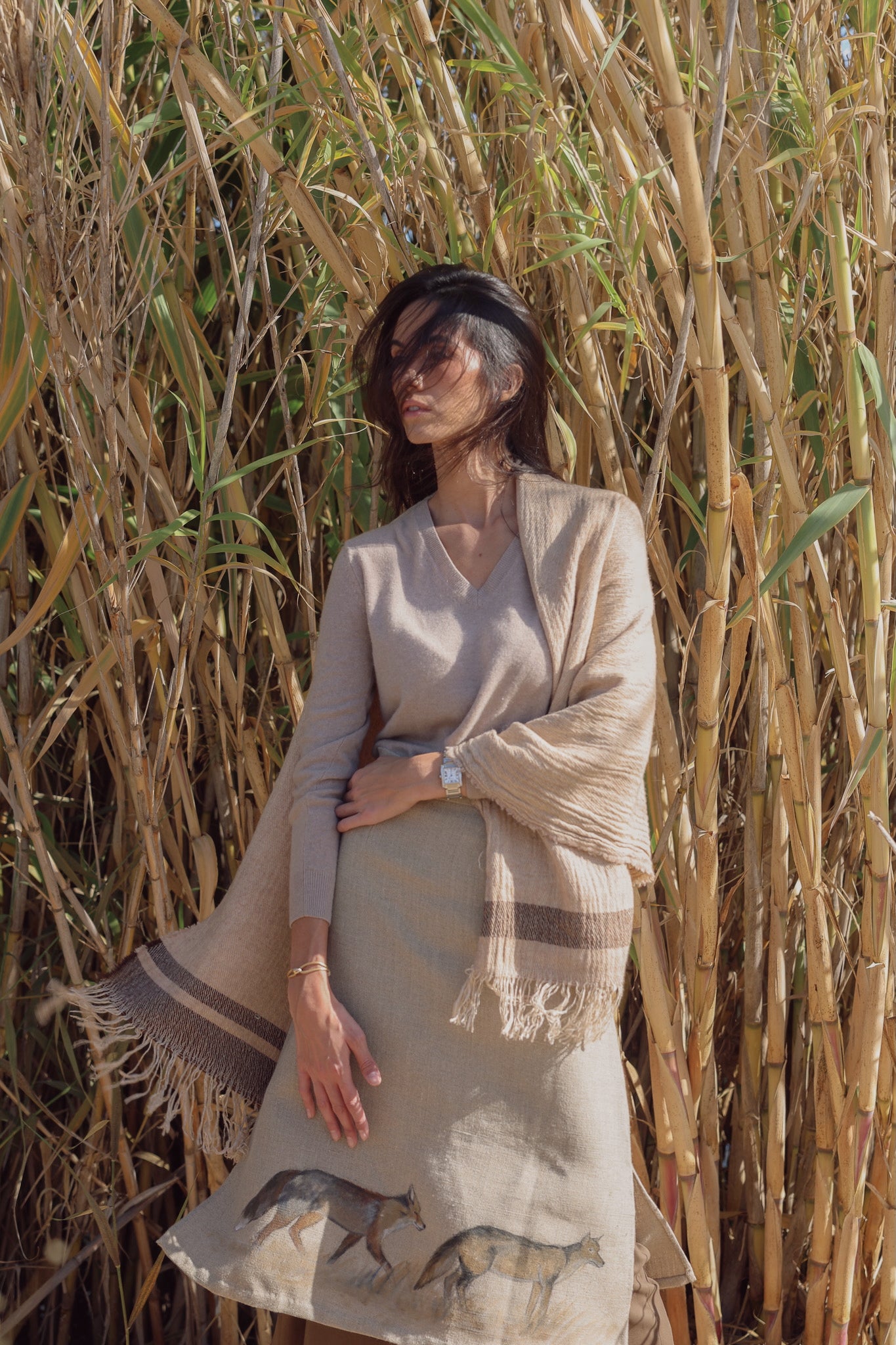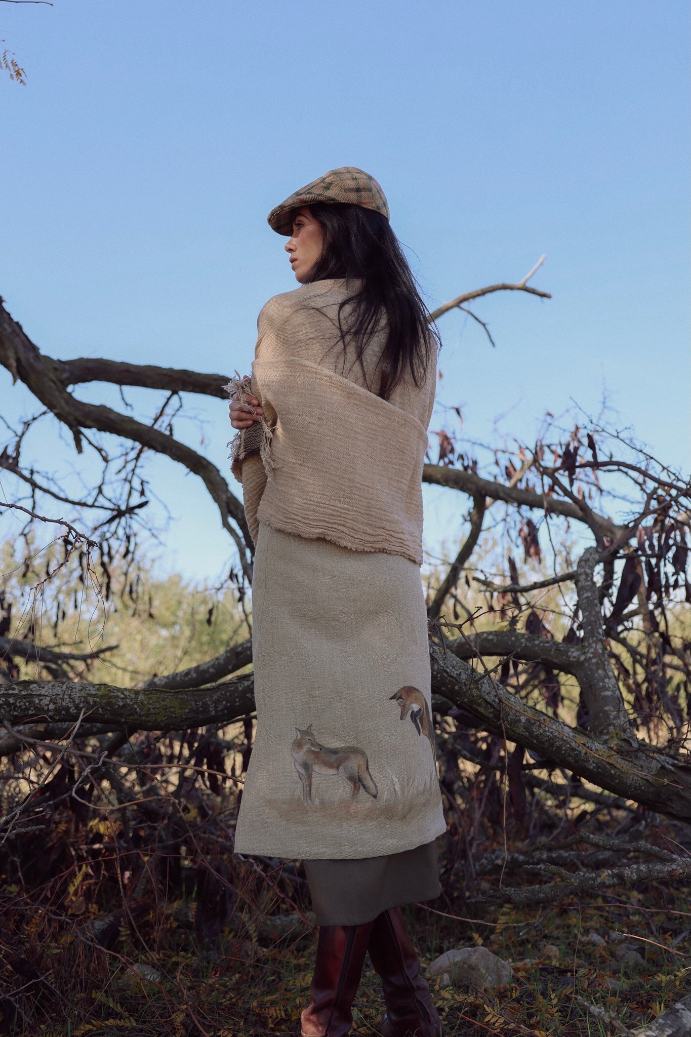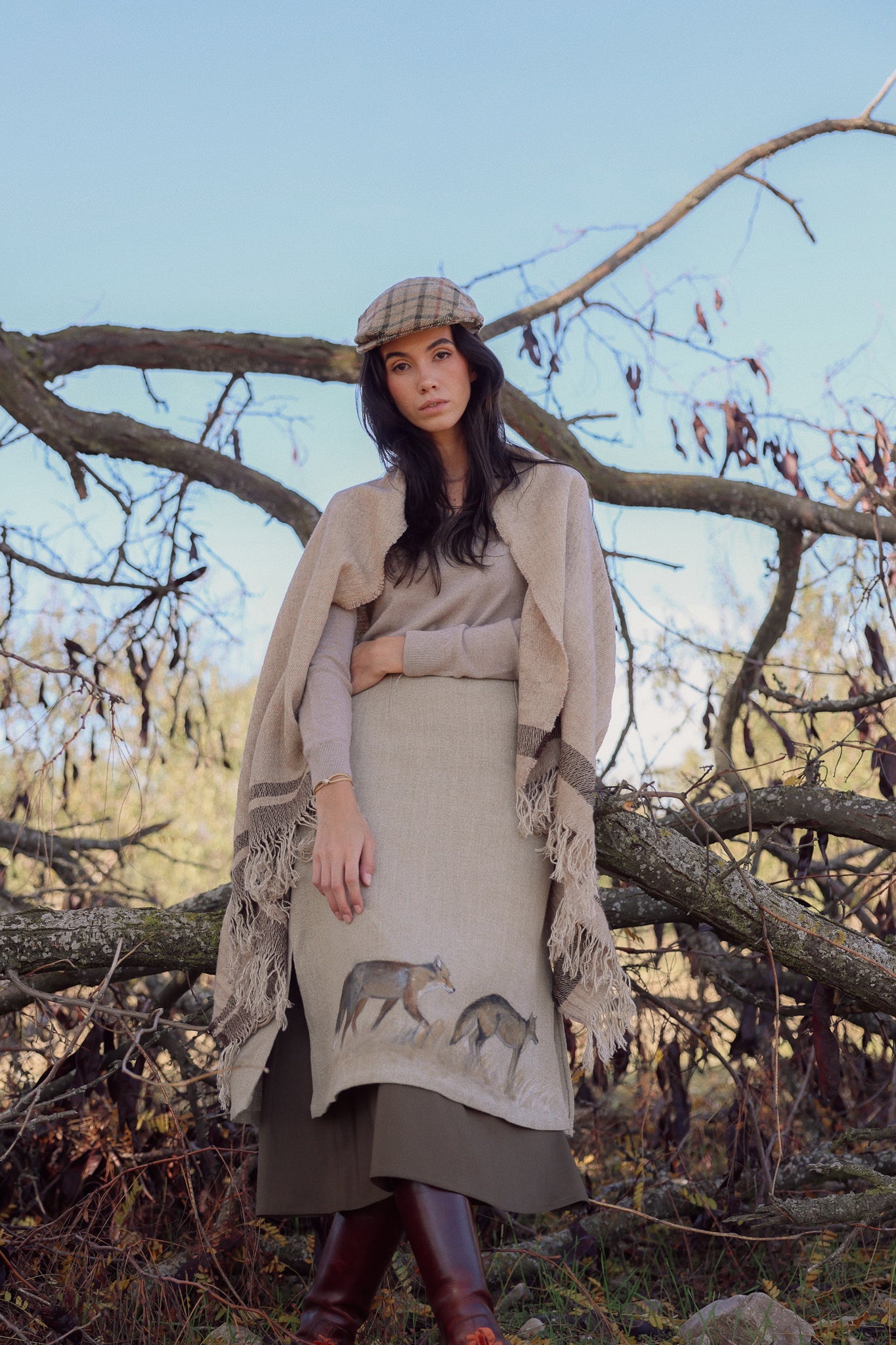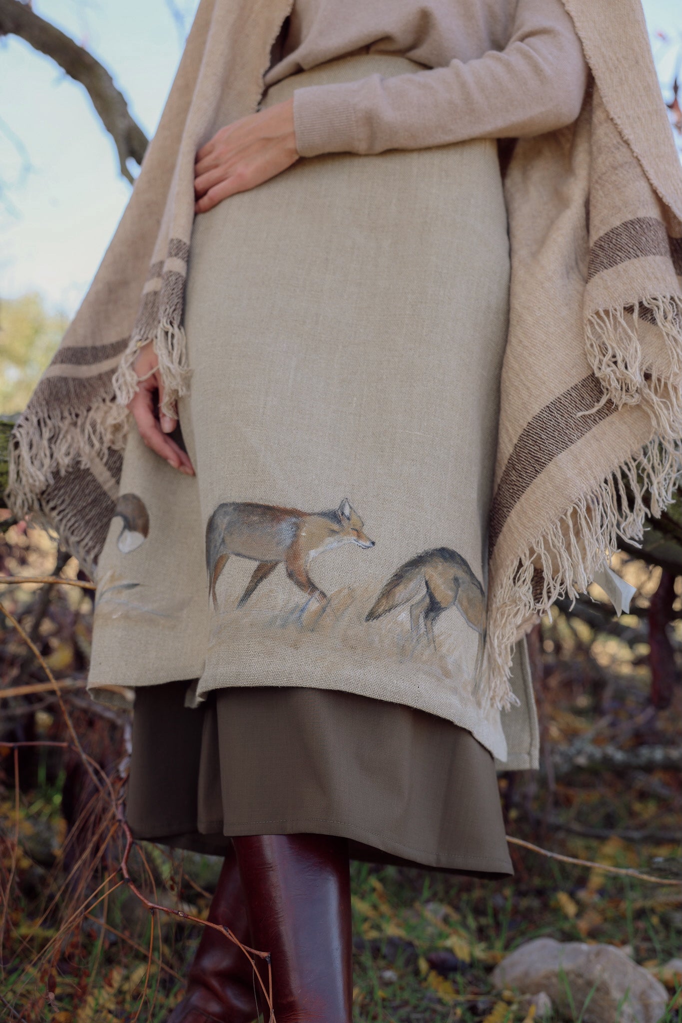 La falda Los Zorros es una pieza exclusiva diseñada íntegramente por Copines, donde la naturaleza, la artesanía y el diseño se unen en una pieza de carácter único.