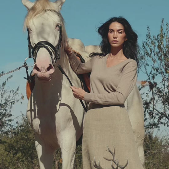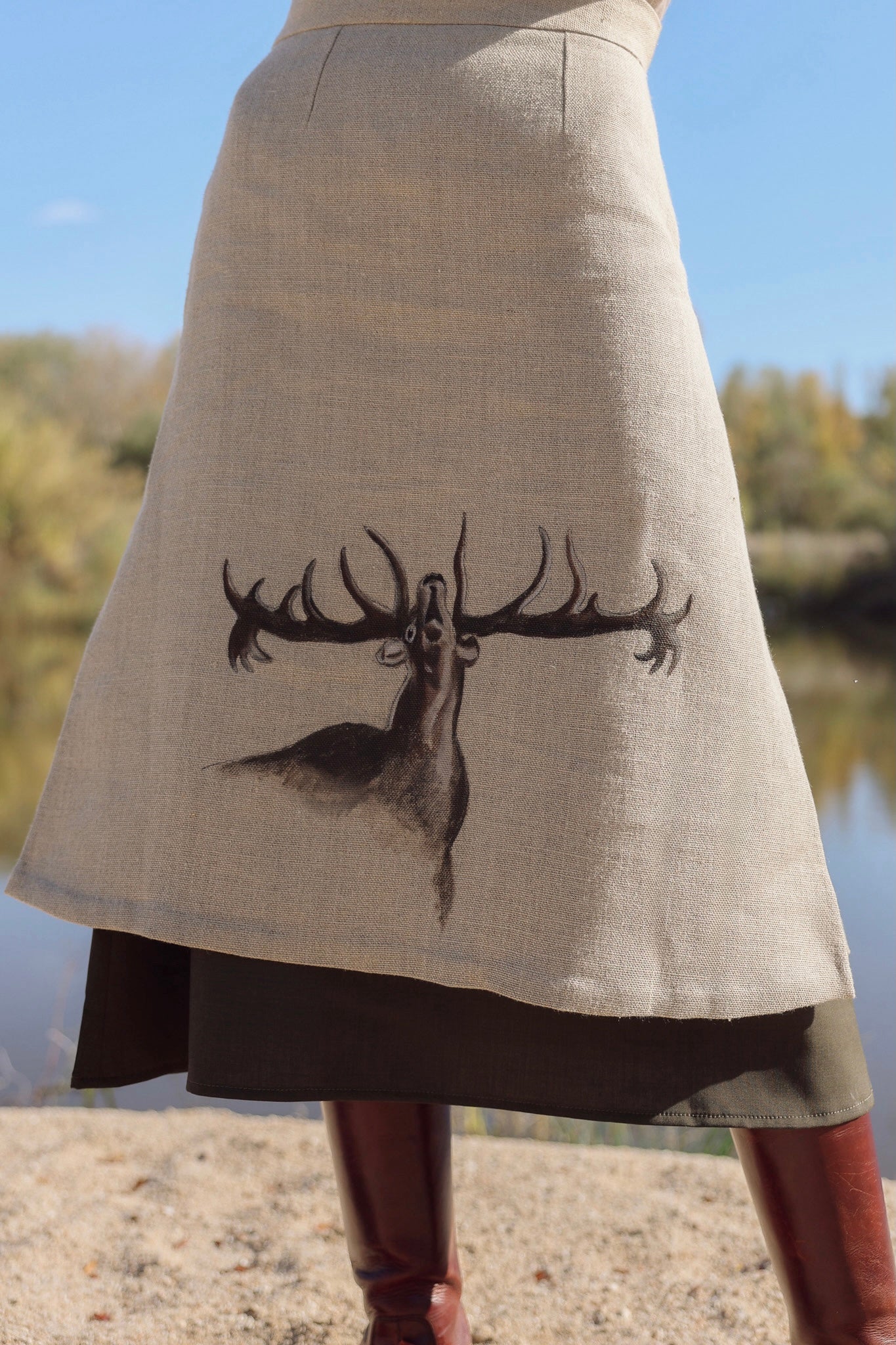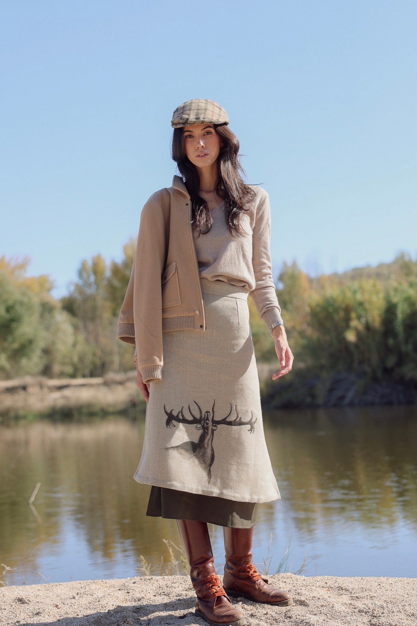 La falda El Venado es una pieza exclusiva diseñada íntegramente por Copines, donde la naturaleza, la artesanía y el diseño se unen en una pieza de carácter único.
